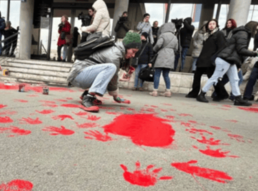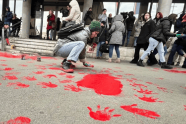The vote was the start of a massive wave of protests in major cities, where protestors would spill red paint on the streets and dye their hands red while chanting “Ruke su vam krvave”, which effectively translates to “You have blood on your hands”, referring to the government. Since December 2nd, one after the other, almost every single University in Serbia joined the blockades (more than 85 faculties), followed by a majority of high schools (Gruhonjic). The students would occupy their universities until June 2025, closing the doors to the media and public, requiring a valid student ID to enter. There would always be someone at the university, guarding the building, with classrooms accommodated as sleeping rooms. Proud citizens and parents didn’t hesitate for a second to show their support for the students by bringing them donations and standing by them, as they would block traffic every Friday in multiple locations at exactly 11:52 for the fifteen minutes of silence for the victims (“Srbijo, pomozi studentima”). It is important to note that all the protests organised by students were of a peaceful and nonviolent nature.