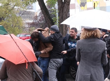 The first dramatic shift in the situation occurred on November 22nd when students from the Faculty of Dramatic Arts gathered in front of their faculty for 14 minutes of silence to pay tribute to the fourteen victims of the canopy collapse at Novi Sad. It's important to note that the students did this alongside blocking the traffic, which angered some of the drivers who got out of their vehicles, and after verbally attacking the students, a physical confrontation followed, resulting in several students having to receive medical treatment (Milovanović). From the accounts of students and reporters who were on the scene and filmed the altercation, it was not difficult to deduce that the event was an organized action, with several drivers having ties to the ruling political party Serbian Progressive Party (SNS). The organized group included Milija Kodžić, Aleksandar Jokić, Dušan Kostić, Milena Aleksić, and Ivan Stanišić (Dašić).