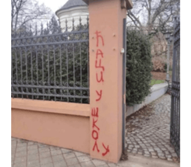 The government implemented some of the more radical measures at the beginning of March. Up until that point, government-affiliated individuals had been provoking the protestors for quite some time. A humorous situation occurred when someone spray-painted “Students back in schools” on the entrance gate of a school; the amusing part is that they misspelt “students” as “Ćaci” instead of “Đaci”, which is spelt similarly in Serbian Cyrillic. This misspelt version of “Đaci”, meaning 'students', was first used to broadly describe However, in early March, a specific group of loyalists would come to earn that nickname. They presented themselves as “Students who want to study” and were in direct opposition to students who blockaded their universities. They brought/were given tents and equipment by most certainly SNS party members and their subordinates. They set up their camp in the Pionir park in front of the Presidency building, stating that they would stay there until their request was fulfilled. This camp was mockingly named by the public as Ćaci-land.